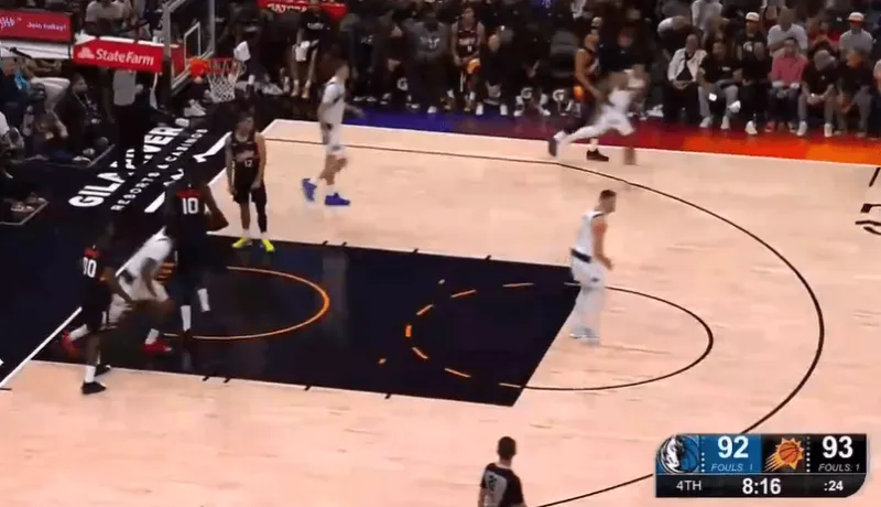 比赛第四节,克里斯蒂反击中再中三分,独行侠最多落后17分现已反超太阳。